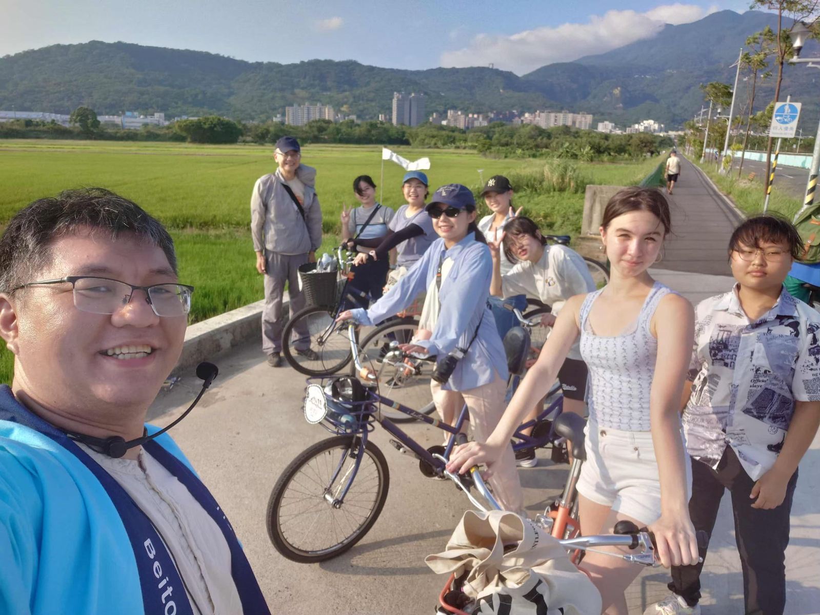 這次的英雄之旅,也讓我有機會望見關渡平原與淡水河交會的風景。課程帶領學生走入校園周邊的環境,大家騎著腳踏車漫遊關渡平原,親身感受淡水沿岸的風光、水文與重新認識臺灣的土地與文化脈絡。無論是紅樹林裡的彈塗魚與寄居蟹,或是福德宮與凱達格蘭族的歷史故事,這些看似與藝術創作無直接關聯的內容,卻悄悄成為理解「人如何在環境中生活」的重要線索,讓旅程成為理解「地方」與「自我」之間這關係的身體筆記。