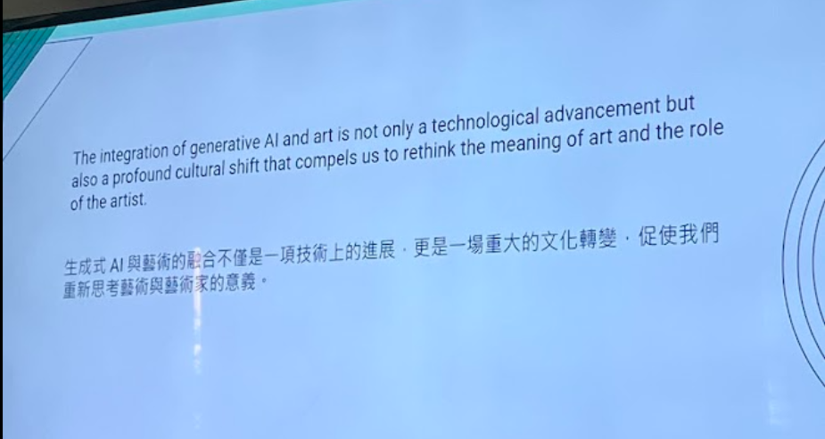 圖3 / 第一堂課的教學簡報,針對這段話,當時全班有一起討論:現階段覺得AI之於藝術家的關係是甚麼,我們會如何去定義它與個人創作? (攝影/李芷萱)