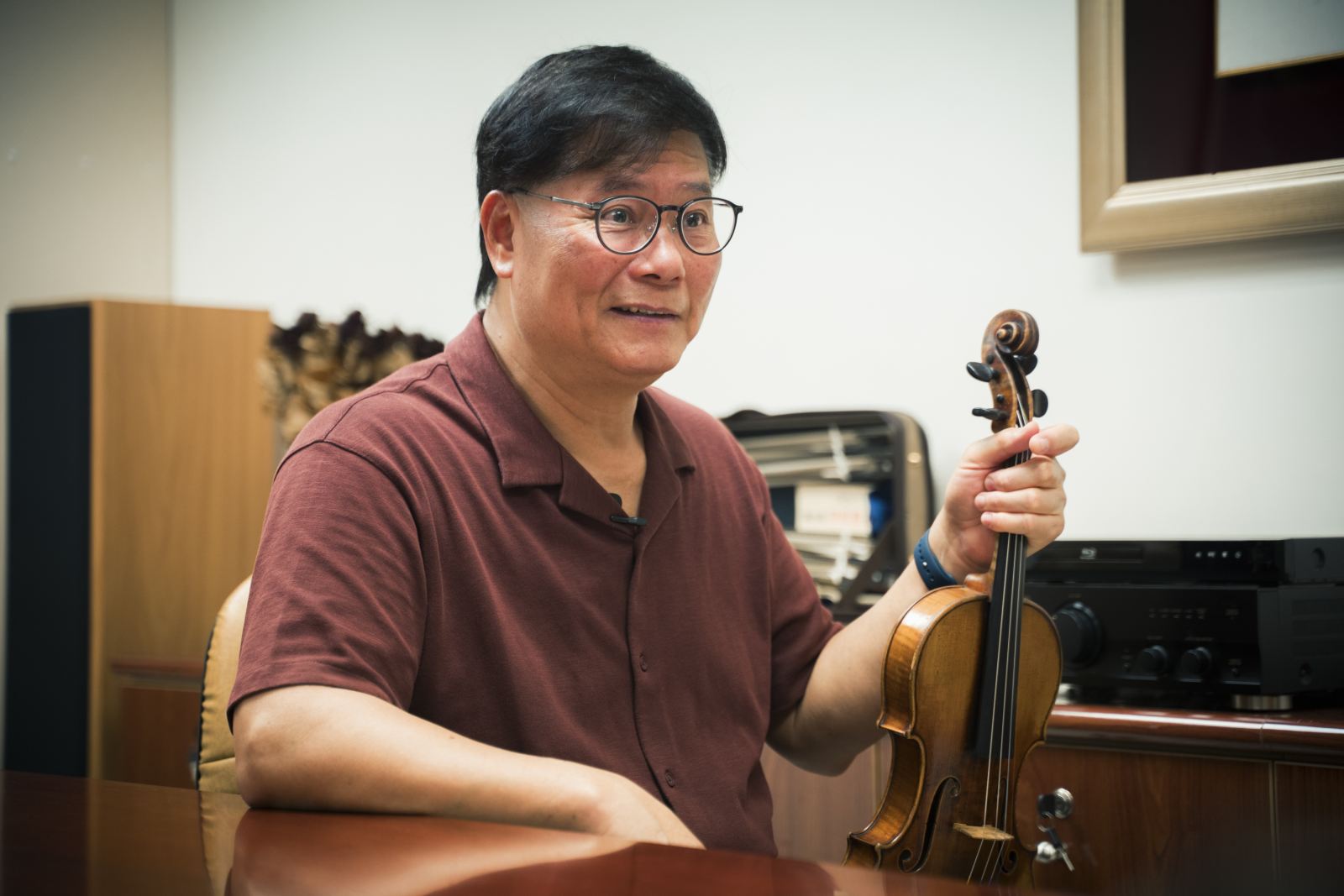 除了演奏與教學,蘇院長還有一個持續了三十多年的身分──廣播節目主持人。早年臺北愛樂電臺開設小提琴的專題節目,每週一小時,他笑說剛開始面對錄音室的麥克風,「就像在對空氣講話」,為了不出差錯,只能在家先寫好逐字稿,一集常要準備三、四個小時。再加上古典樂聽眾對年代、曲目背景與故事非常敏感,任何細節說錯,立刻電話打進來抗議。因此長期下來,他大量閱讀、查詢資料,從作曲家生平、歷史脈絡到不同詮釋版本都要弄清楚。「這些知識不一定會讓你的小提琴立刻拉得更好,但如果完全不知道,一定拉不好。」他常這樣提醒學生。沒有曲子風格概念、不理解作品脈絡,只把音符「拉正確」,就跟機器播放出來沒有太大差別。課堂上,他會問:「你剛剛拉的是你心裡真正想要的聲音嗎?」多數學生都搖頭。「既然如此,為什麼一開始不先想清楚自己要什麼?」在他看來,演奏之前先釐清想說的話、想拉出的聲音,才是走向成熟音樂家的關鍵。也因為有廣播節目的訓練,他更能在課堂裡將複雜的歷史與風格,用簡單易懂的比喻講給學生聽,並讓他們理解:練琴不只是手上的功夫,更是腦袋和心裡的實力。