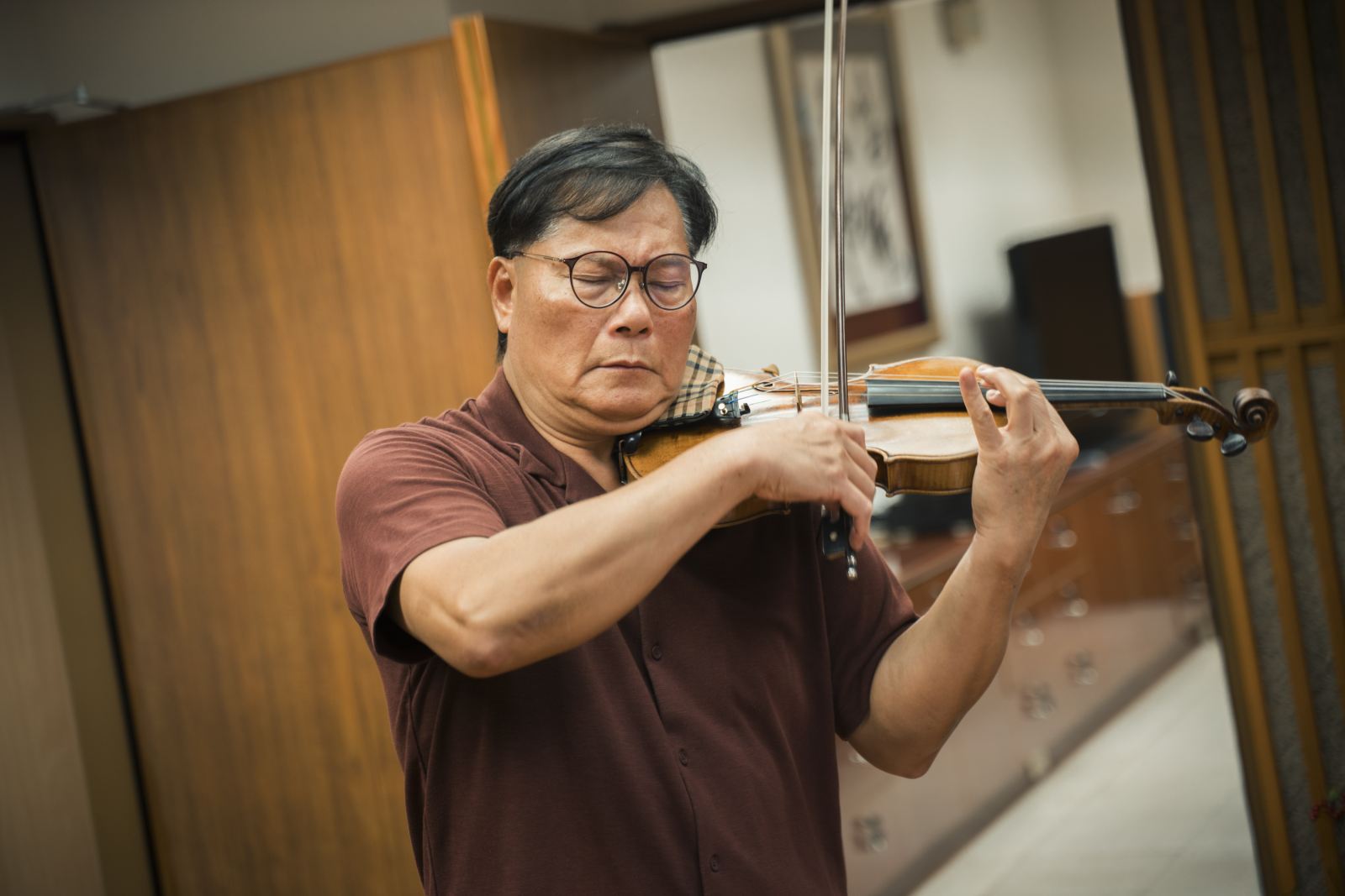 在法國留學期間,讓蘇院長印象最深的,是老師上課時總是「拿著琴」,不只用言語來指導,而是隨時拉琴來示範,把琴音當成最直接的語言。回臺後,他延續這樣的方式:三十多年來,只要是主修課,一定帶著小提琴走進教室。「一根手指伸出去,指出學生的問題,也別忘記還有四根手指是指向自己。」他認真地說。而沒有足夠的演奏實力,就沒有資格要求學生,要維持這樣的示範標準,背後得靠龐大的曲目累積,一個學期十位學生、每人四首曲子,老師就得掌握四十多首作品,只能不斷練琴、讀譜,讓舞台與教室在往返之間互相滋養。對許多學生來說,上課不只是學技巧,更是聽他分享第一線演出經驗與鮮活的音樂舞台場景。
